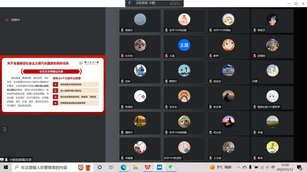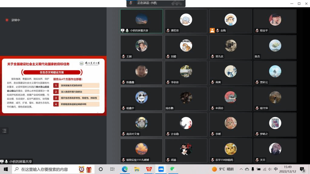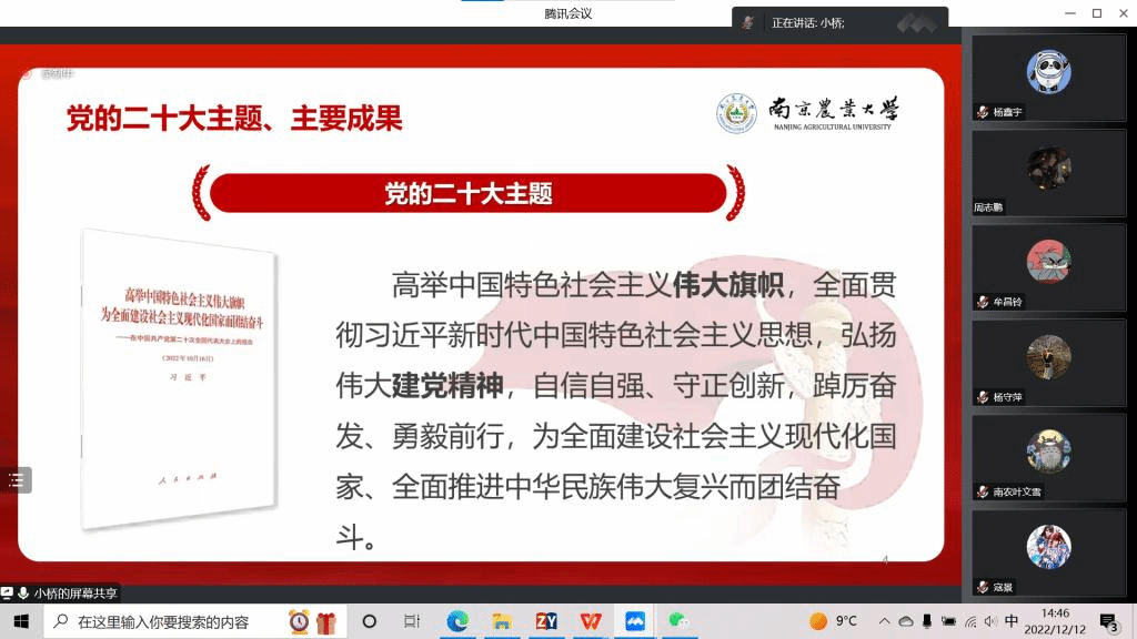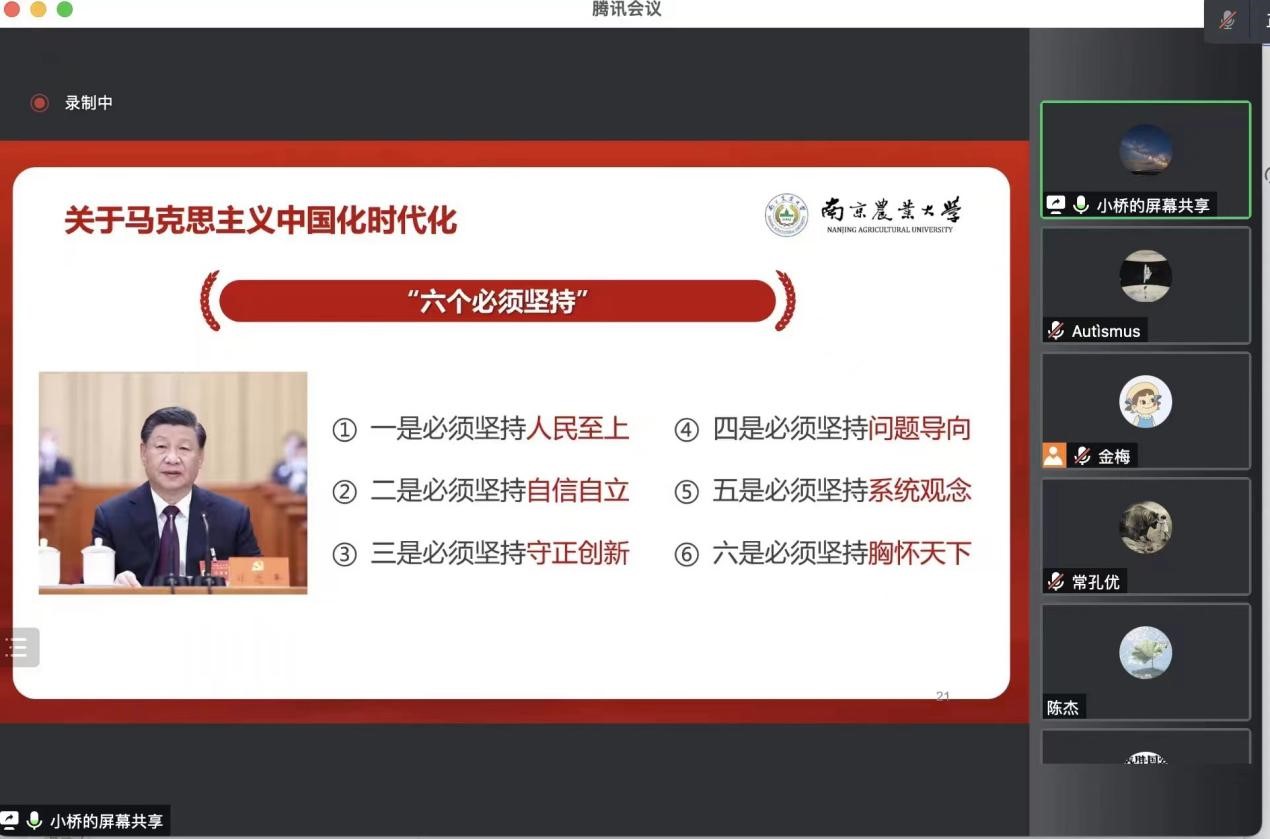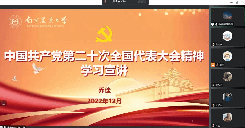 为全面深入学习贯彻党的二十大精神,引导广大师生坚定不移听党话、跟党走,12月12日下午,黑料网 邀请马克思主义学院乔佳老师进行线上宣讲,全体师生党员参加会议。