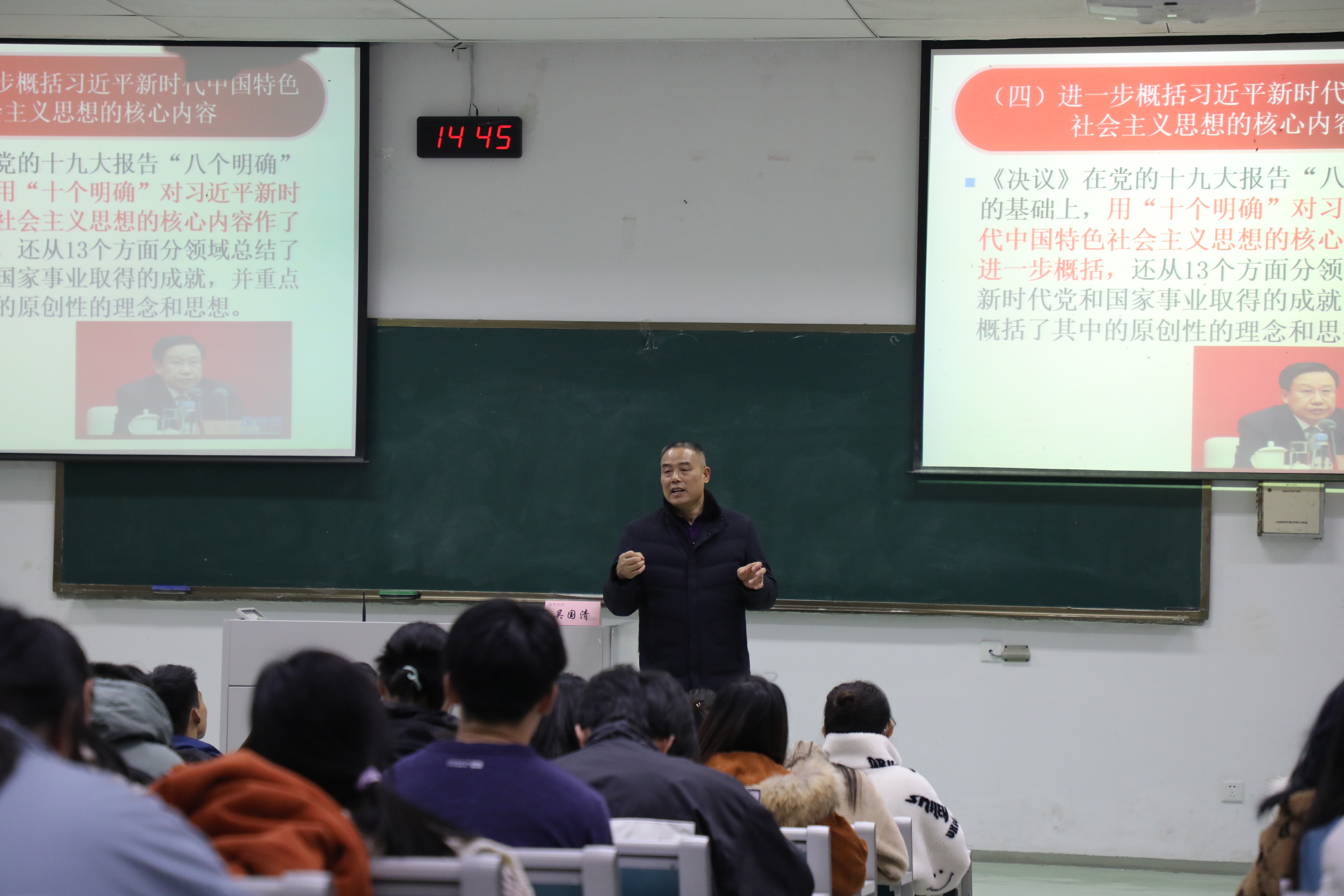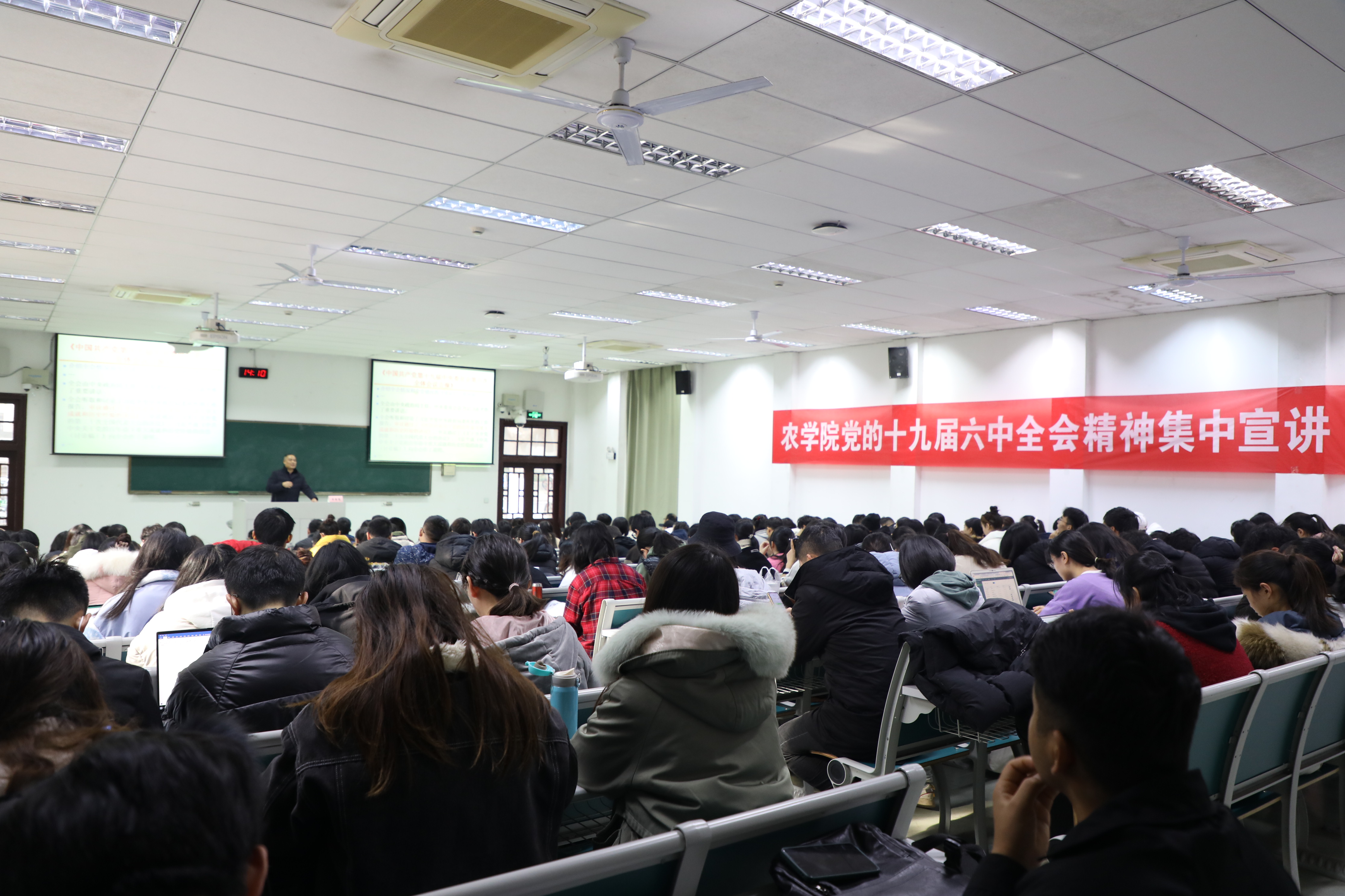 根据学校统一安排部署,12月15日下午,学校党的十九届六中全会精神宣讲团成员、马克思主义学院教授吴国清为学院师生作主题宣讲报告。我院各党支部书记、普通党员、入党积极分子等200余人参加集中学习。院党委副书记殷美主持宣讲报告会。