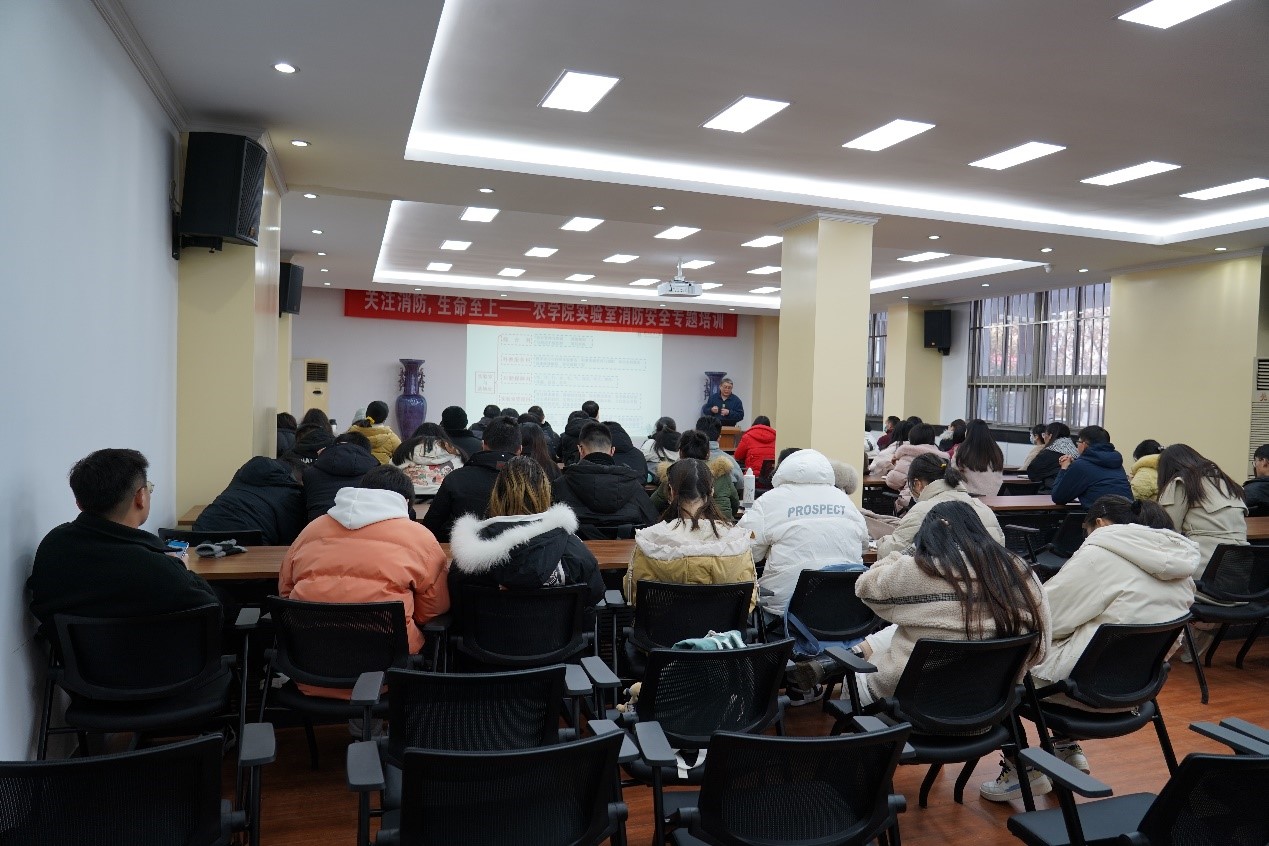 首先伍教官介绍了实验室消防安全,语言通俗易懂,幽默形象,将消防知识与实际案例相结合,使师生在轻松愉快的氛围中提高了安全意识、了解和掌握消防技能。