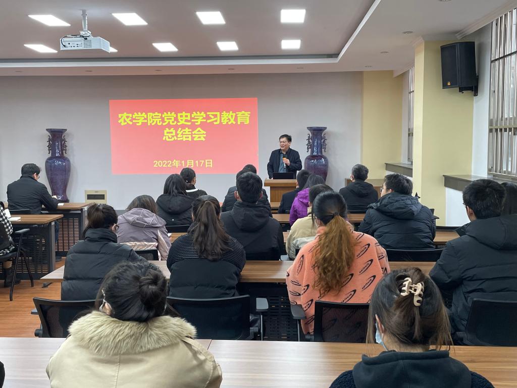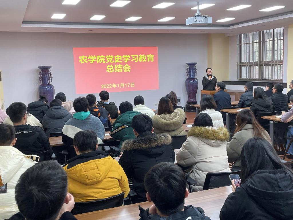 院党委副书记殷美在主持会议时强调,做好学院党史学习教育总结工作,对于确保学习教育善始善终、善学善用、善作善成,巩固和用好学习教育成果,具有重要意义。全院党员领导干部、师生要不断增强“四个意识”、坚定“四个自信”、做到“两个维护”,坚决捍卫“两个确立”,以史为鉴向未来,将伟大的建党精神转化为埋头苦干、勇毅前行、满怀信心的奋斗精神,在平凡岗位上不断创造不平凡的育人事业,为推动党和国家在教育事业、三农事业发展的进程中再建新功,以优异成绩献礼党的二十大胜利召开!