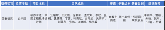 10月15日,第七届中国国际“互联网+”大学生创新创业大赛在南昌大学顺利闭幕。我院的“稻亦有道:中国水稻栽培设计师”高校主赛道项目在校赛、省赛中破浪乘风,最终进入本次全国总决赛。在世界青年学子汇聚的南昌,经过激烈角逐,该项目历史性斩获全国银奖。