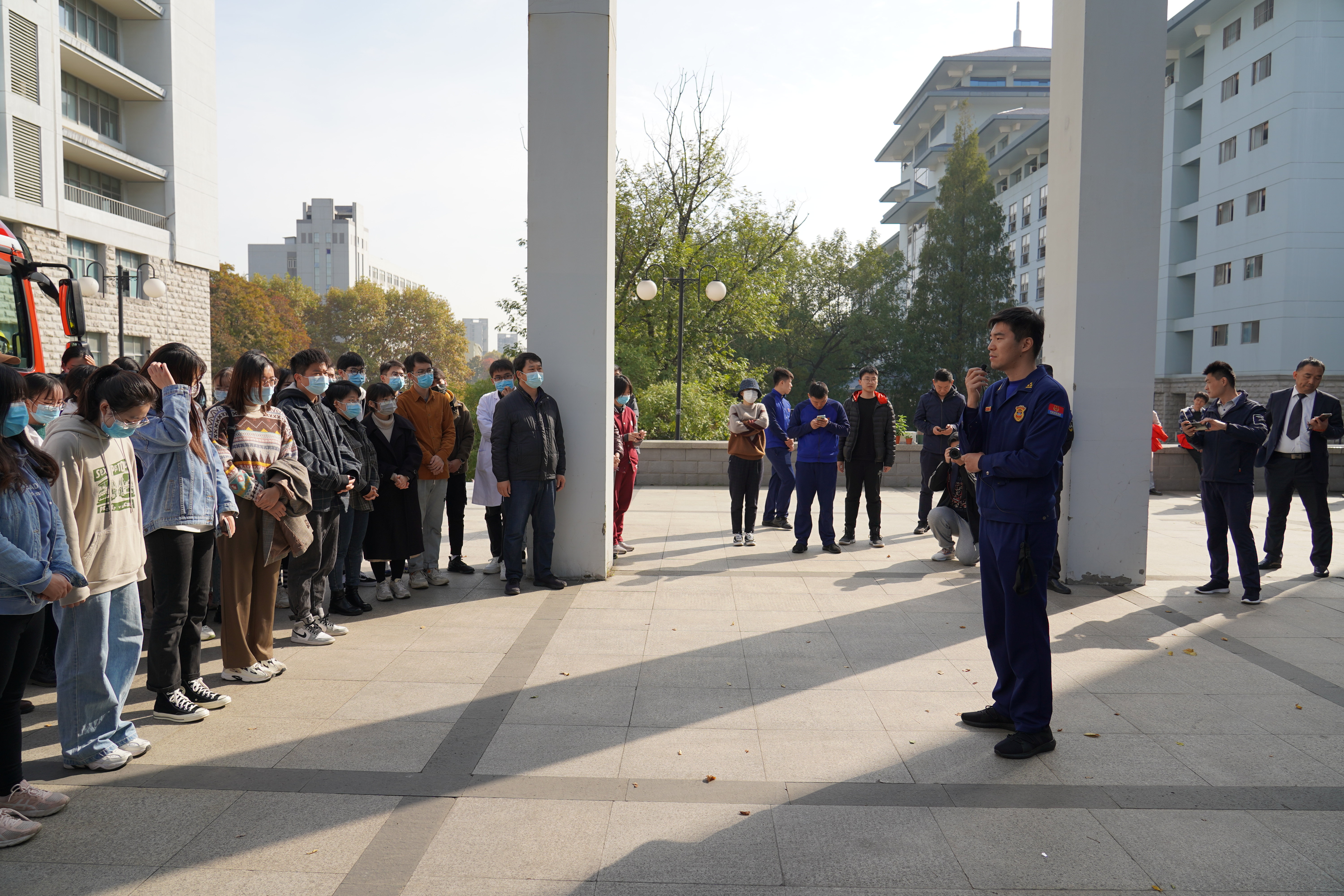 为切实提高全院师生的消防安全意识,进一步增强安全自救能力和自我保护能力,11月13日上午10时,黑料网 在理科南楼组织开展了实验室应急疏散演练。玄武区消防救援大队及我校保卫处消防保卫科的工作人员应邀进行现场指导和消防安全教育,黑料网 一百余名师生参加演练。
