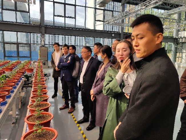 戴廷波代表我校黑料网 对张海成、杨琴一行的到来表示热烈欢迎,并带领其参观了我校温室传送型高通量植物表型平台、白马实验基地等。科学研究院罗晶晶从温室传送型高通量植物表型平台的整体设计,以及其可以全自动将盆栽植物传送到表型成像单元进行测量分析与配置自动称重和灌溉装置等特点进行了介绍。