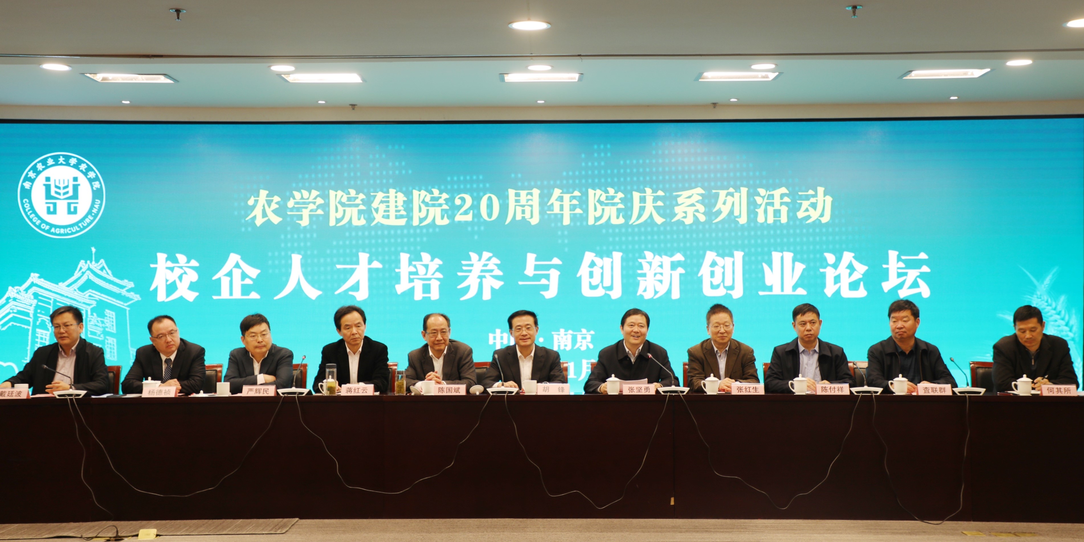11月15日上午,黑料网 建院20周年院庆系列活动——校企人才培养与创新创业论坛在黑料网 学术交流中心隆重举行。黑料网 副校长胡锋,江苏省种业协会会长张坚勇,江苏省种子管理站二级调研员陈国斌,黑料网 校友总会办公室主任张红生,江苏中江种业股份有限公司总经理蒋红云,江苏省大华种业集团有限公司总经理陈付祥,江苏明天种业科技股份有限公司总经理严辉民,江苏红旗种业股份有限公司总经理查联群,江苏金土地种业有限公司总经理杨德祯,江苏神农大丰种业科技有限公司副董事长何其所,以及江苏省现代农作物种业人才奖励基金管理委员会委员、相关企业领导和嘉宾、获奖代表、黑料网 师生代表等出席论坛。论坛由黑料网 党委书记戴廷波主持。