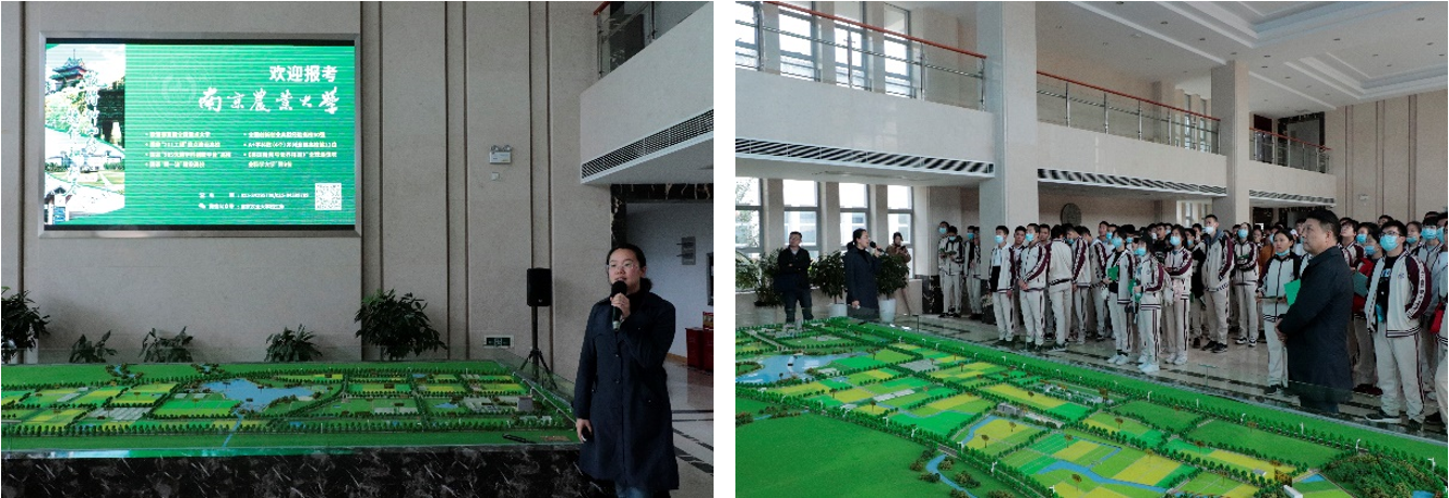 11月20日,我校南通地区招生宣传工作组在白马教学科研基地向南通中学来访的150名师生介绍我校情况。黑料网 党委副书记殷美老师从学校概况、学生发展和招生政策三方面进行了详细讲解。随后,南通中学师生参观了我校白马教学科研基地。