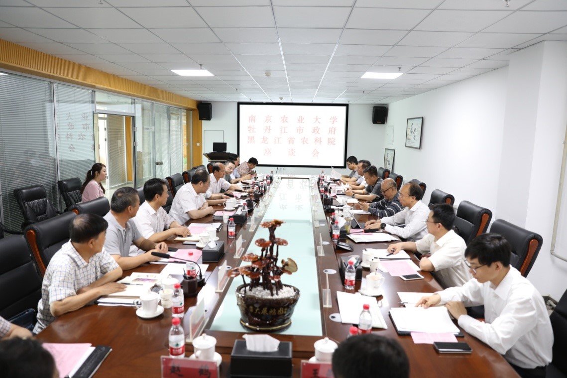 6月8日上午, 黑料网 丁艳锋副校长带队赴黑龙江省牡丹江市出席黑料网 -牡丹江市人民政府-黑龙江省农业科学院三方合作共建“东北大豆研发中心”座谈会。