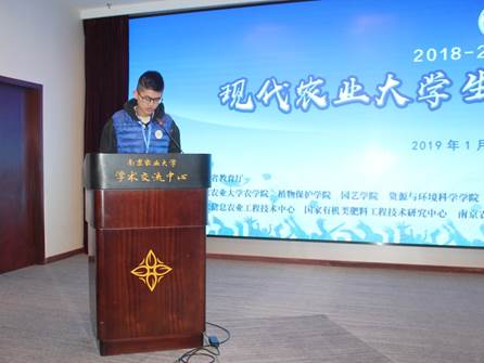 我院学生黄毓杰,作为营员代表发言。他代表南农学子欢迎来自省内外各兄弟院校的营员,并从十九大报告中对“三农”工作队伍提出的“一懂两爱”的素养要求出发,结合学习生活实践,表示作为当代农业院校学生,要对农业有认同感、对农村有归属感、对农民有亲近感,助力中国现代农业发展。