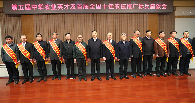 农业部部长韩长赋、副部长张桃林、中组部人才工作局局长孙学玉及农业部党组成员、人事劳动司司长毕美家等接见了10位中华农业英才奖获得者和全国十佳农技推广标兵。张桃林宣读了表彰决定和资助通知。