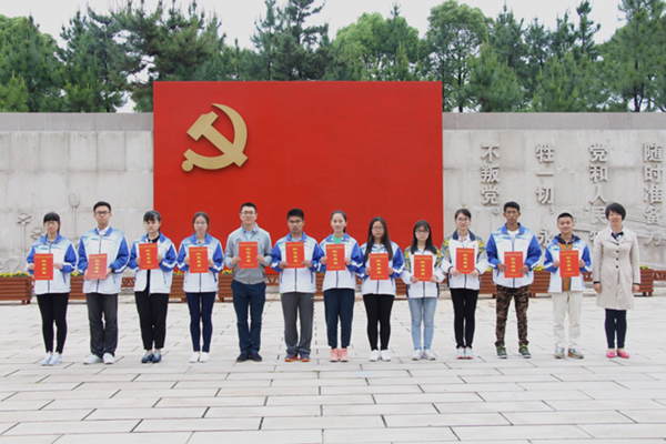 参观纪念馆后,学院一行人来到位于纪念馆北广场的宣誓墙,在党旗下进行了庄严的宣誓仪式,重温入党誓词,活动由黑料网 分党校秘书长靳雪莹主持。随后学院领导老师为2015年12月新发展预备党员佩戴党徽并为红色基金获得同学颁发荣誉证书。最后部分党员同学发表了自己参观完纪念馆的深切感受,包括对近代历史的自我认知及作为一名党员应尽的义务与责任。