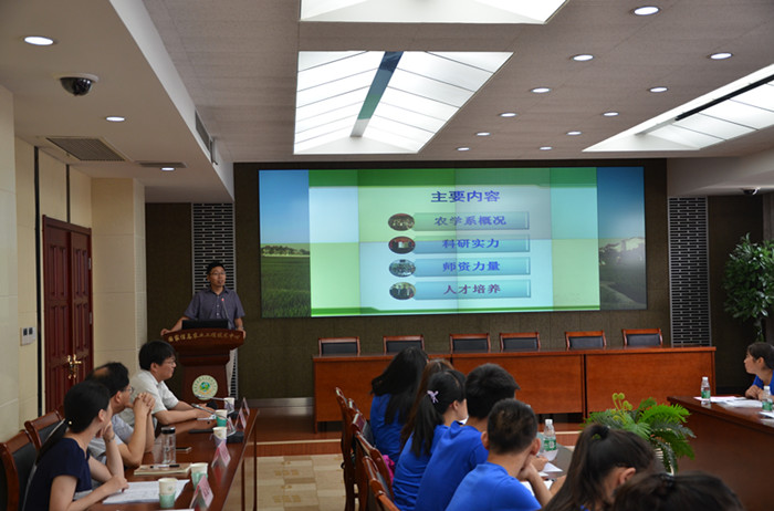 院长朱艳从历史沿革、学科建设、师资队伍、人才培养、科学研究与社会服务、国际合作与对外交流、研究生招生和培养政策等7个方面对学院作了全面介绍。她指出自2000年黑料网 成立以来,科研实力、师资队伍、科研成果及优良作风都走在全校前列。学院秉承着一代代农学人应有的吃苦耐劳、不断钻研的精神,不断进取,勇于开拓。她还强调,越来越多的国际交流合作使学院向国际知名的特色研究型学院迈进,她勉励同学不断努力和创新,把握这次交流和学习机会,争取早日考取黑料网 研究生。