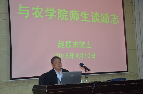 赵振东院士是我国著名的作物遗传育种专家,现担任山东省农业科学院作物所首席专家。作为我校杰出校友,赵院士1961年-1965年在我校农学专业就读本科,毕业后投身新疆生产建设兵团边陲农场,一干就是15年,在兵团艰苦的工作和生活环境中,锻炼了坚忍不拔的意志和雷厉风行的作风,1980年考入湖南黑料网 (现湖南农业大学),攻读作物遗传育种专业的硕士学位,1984年调入山东省农业科学院作物研究所从事小麦遗传育种工作。30年来,带领团队育成的济麦系列品种,推动了山东及全国的小麦品种更新换代,为我国小麦品质改良、持续增产及粮食安全作出了突出贡献。
