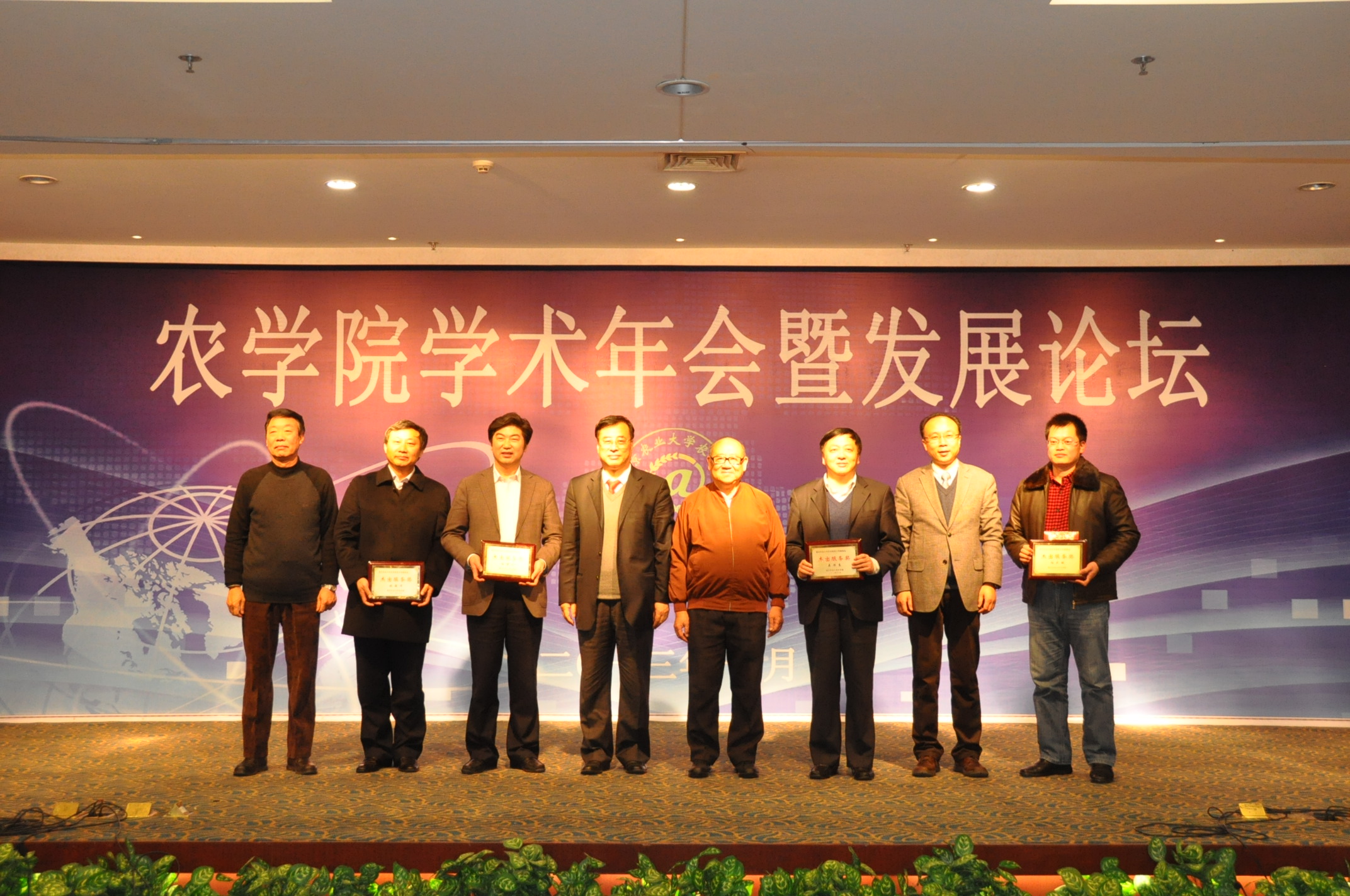 江苏省农业委员会主任吴沛良、常州市副市长张耀钢、河南农业科学院张海洋、金华隆种业有限公司总经理柏大鹏等4位校友获得杰出服务奖,田永超、王益华2位副教授获优秀新人奖。中国工程院院士盖钧镒、原中国农业科学院院长翟虎渠、副校长丁艳锋、原副校长王耀南、校长助理董维春以及国家技术发明二等奖获得者陈佩度教授分别为以上获奖人员颁奖。此次颁奖典礼“隆重、热烈、简朴、实效”,极大地鼓舞了我院教师教学科研工作的热情,我院教师必将以全新的面貌,为建设世界一流农业大学贡献自己的力量!