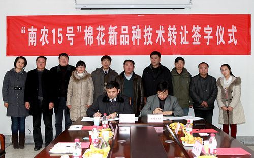 2013年1月6日上午,我校与江苏金色农业科技发展有限公司在黑料网 棉花研究院会议室举行“南农15号”棉花新品种技术转让签约仪式。“南农15号”成为我校棉花研究所转让的第10个品种。
