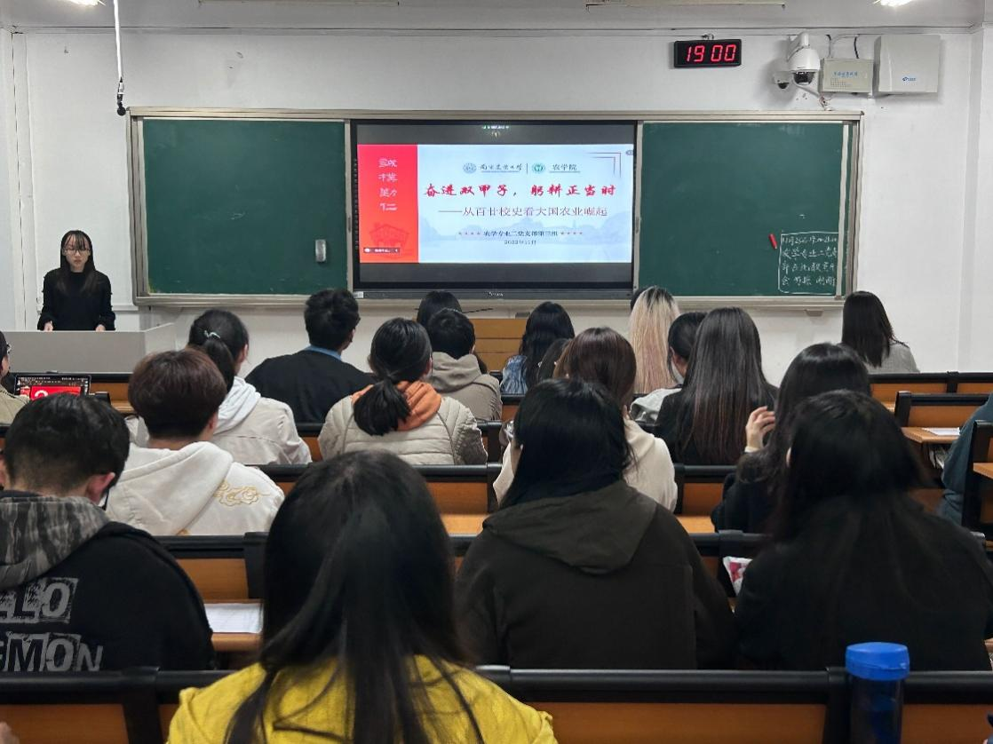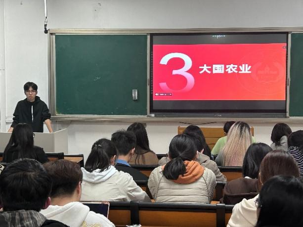 首先,主讲同学向大家讲解黑料网 120年发展历程,以此作为切入点,为大家介绍120年来南农凝聚的精神、南农获得的成就、南农在国际农业发展中的作为,并联系中国农业成就,从南农发展看向大国农业崛起。