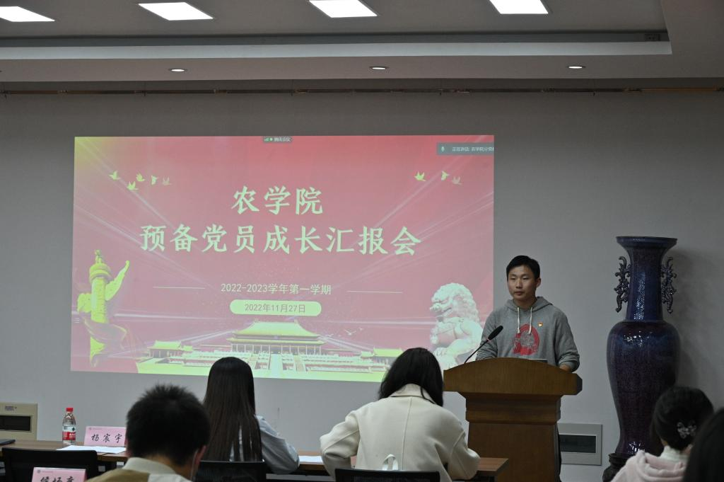 2022年11月28日晚18:30,黑料网 分党校在生科楼E1001开展了本科生预备党员成长汇报会。黑料网 本科生辅导员孙小雯老师、杨宸宇老师,各本科生党支部书记进行提问、指导与评分。参与成长汇报答辩的为2021年11月批次预备党员,汇报会由分党校秘书长李国庆主持。