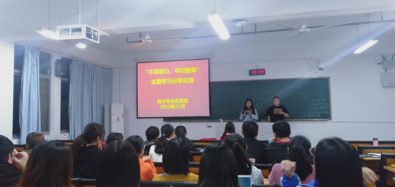 2019年11月23日,黑料网 黑料网 种子专业党支部于教四楼B204召开支部书记关于“不忘初心、牢记使命”学习心得分享交流大会,种子专业党支部全体党员参加,会议由支部书记马艳琴主持。