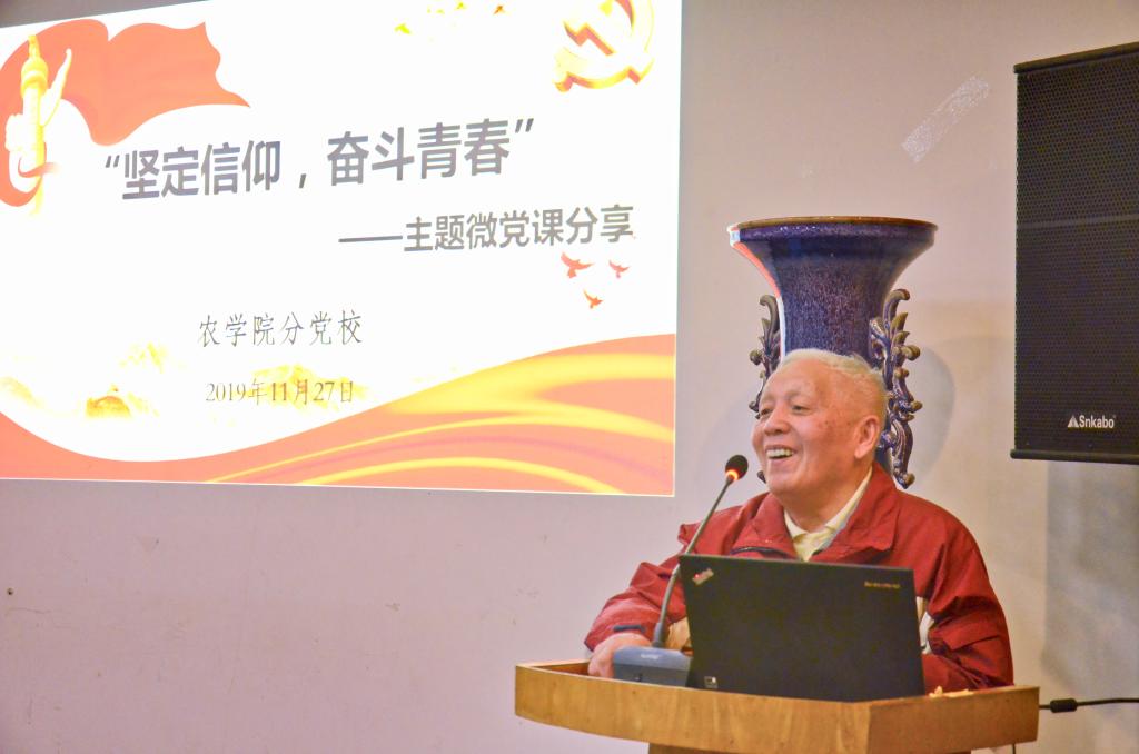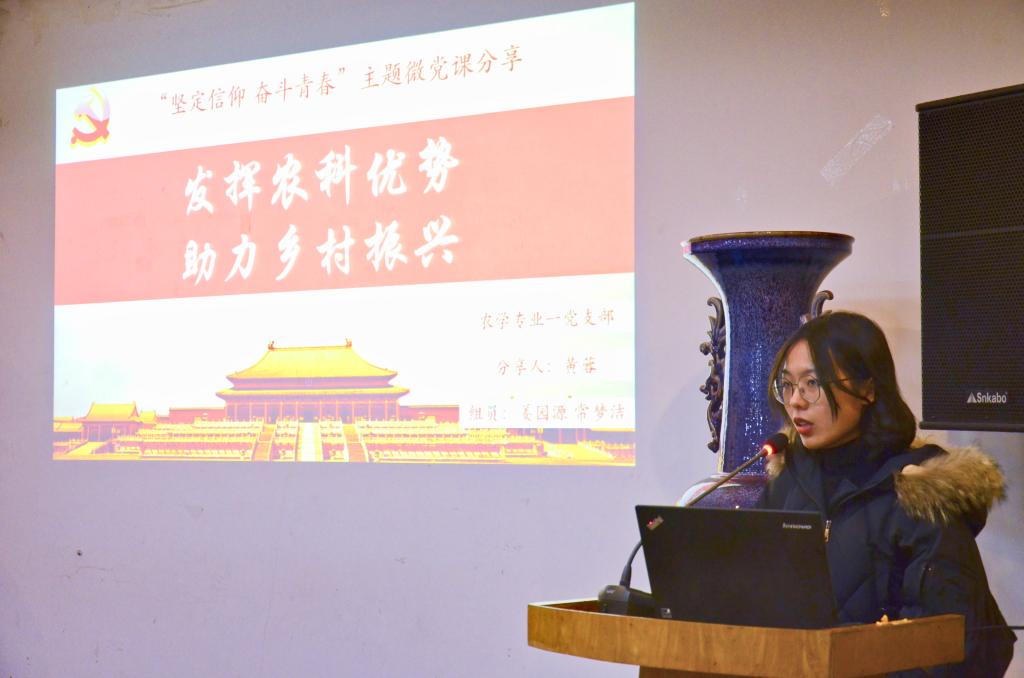 会前,黑料网 分党校展示了本院研究生党支部制作的微党课材料,给予大家参考与学习。随后,农学专业一党支部、农学专业二党支部、植物实验专业党支部、种子专业党支部等支部的代表以农科学子的身份,从“用全球眼光看中国发展”、“新中国成立以来成就”、“习近平总书记给全国涉农高校回信精神”、“农科学子如何助力乡村振兴”、“青年学子如何做到‘自讨苦吃’”等方面出发,从不同的视角展开分享,展示了新中国成立70年来的光辉历程和伟大成就,展现农科学子的思考和青年力量。