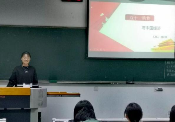此次分班讨论,由宛心怡、王誉晓两名同学进行分享。王誉晓从双十一购物的表观体现出发,为我们介绍了双十一当天的销售额、消费群体、各大电商占比,并为我们展示了当前先进壮观的智慧物流。可以看出,双十一的巨大成功与我国的科技发展、人民生活水平提高密不可分。第二部分由宛心怡详细剖析了双十一与中国经济发展间的有机联系。双十一销售额的逐年增长与下沉市场开发、人民消费能力提高密切相关,对国民经济增长也有重要意义。宛心怡同时也指出双十一存在冲动消费以及个人隐私泄露等问题。