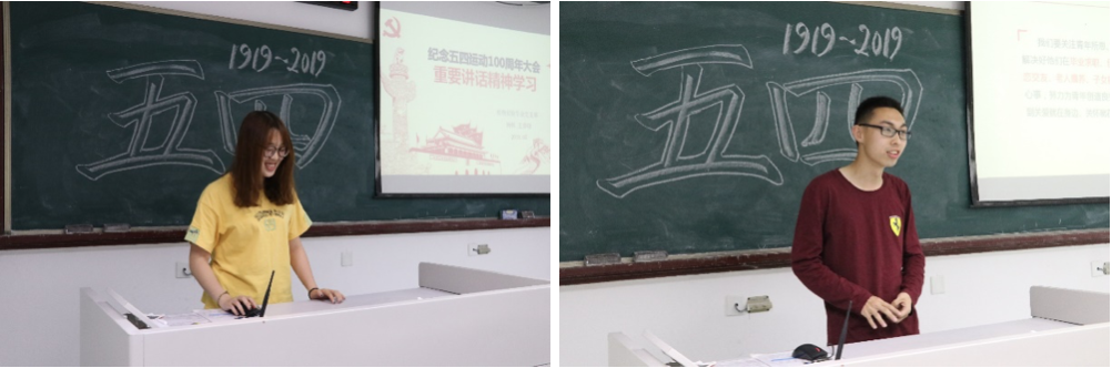随后支部成员杨帆将习近平总书记在纪念五四运动100周年大会上的讲话分为五个部分,向支部成员介绍了五四重要讲话的内容;王誉晓同学则表达了他学习五四讲话的受到的感动与鼓舞,呼吁我们永久奋斗,迎难而上,勤以修身,学以报国。