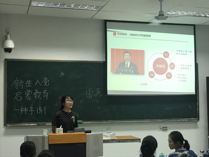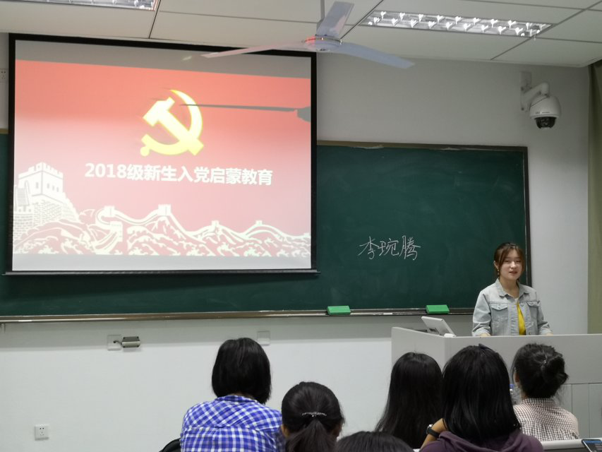 为鼓励2018级黑料网 新生积极向党组织靠拢,端正入党动机,了解入党要求和入党流程,树立正确的指导思想,黑料网 分党校组织开展了新生入党启蒙教育活动。本次启蒙教育于9月19日在主楼各教室召开。活动以班级为单位,由7位16级带班党员主持。