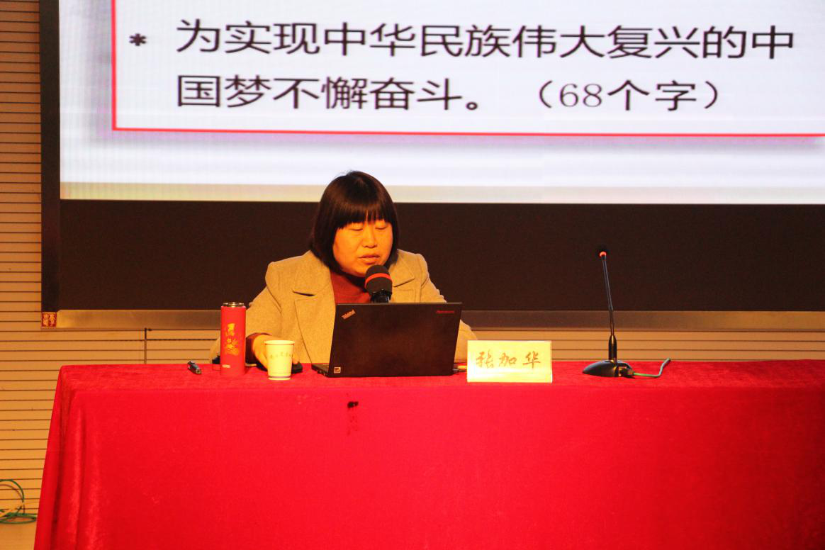 本次主题党课,张加华教授以“伟大复兴中国梦依然是新时代中国共产党的历史使命”、“中国共产党是中华民族伟大复兴历史使命的合格担当者”、“统揽“四个伟大”奋力实现新时代中国共产党的历史使命”为提纲,详细解读历史的、现实的、未来的伟大复兴中国梦,深入浅出讲述了中国共产党应以永不懈怠的精神状态进行伟大斗争,为中国人民谋幸福,为中华民族谋复兴。