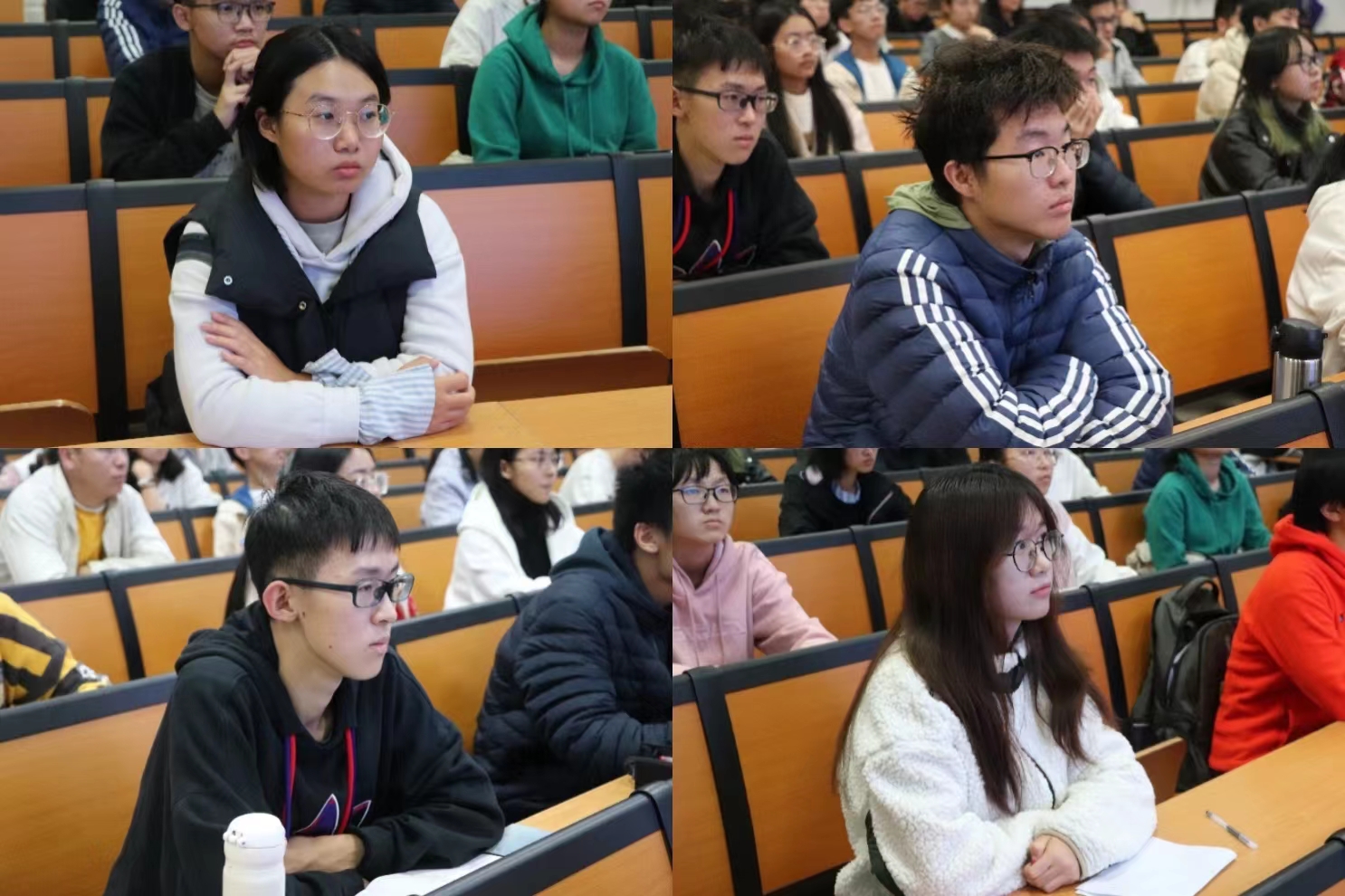 之后老师为同学们讲解了试卷各部分试题的特点及相应的应试技巧。在听力部分,马老师以真题为例,为同学们讲解了四级听力考试的题型及特点,并介绍了听力各个部分的常见场景和解题技巧,介绍了考试时如何通过画关键词,寻找同近义表达等帮助解题。老师通过讲解与真题体验相结合的模式让同学们深入了解了听力各部分的特点,指出大家在做题时要注重审题,学会通过审题推断听力材料的类型,并强调大家在做题时要懂得取舍,合理分配做题时间。