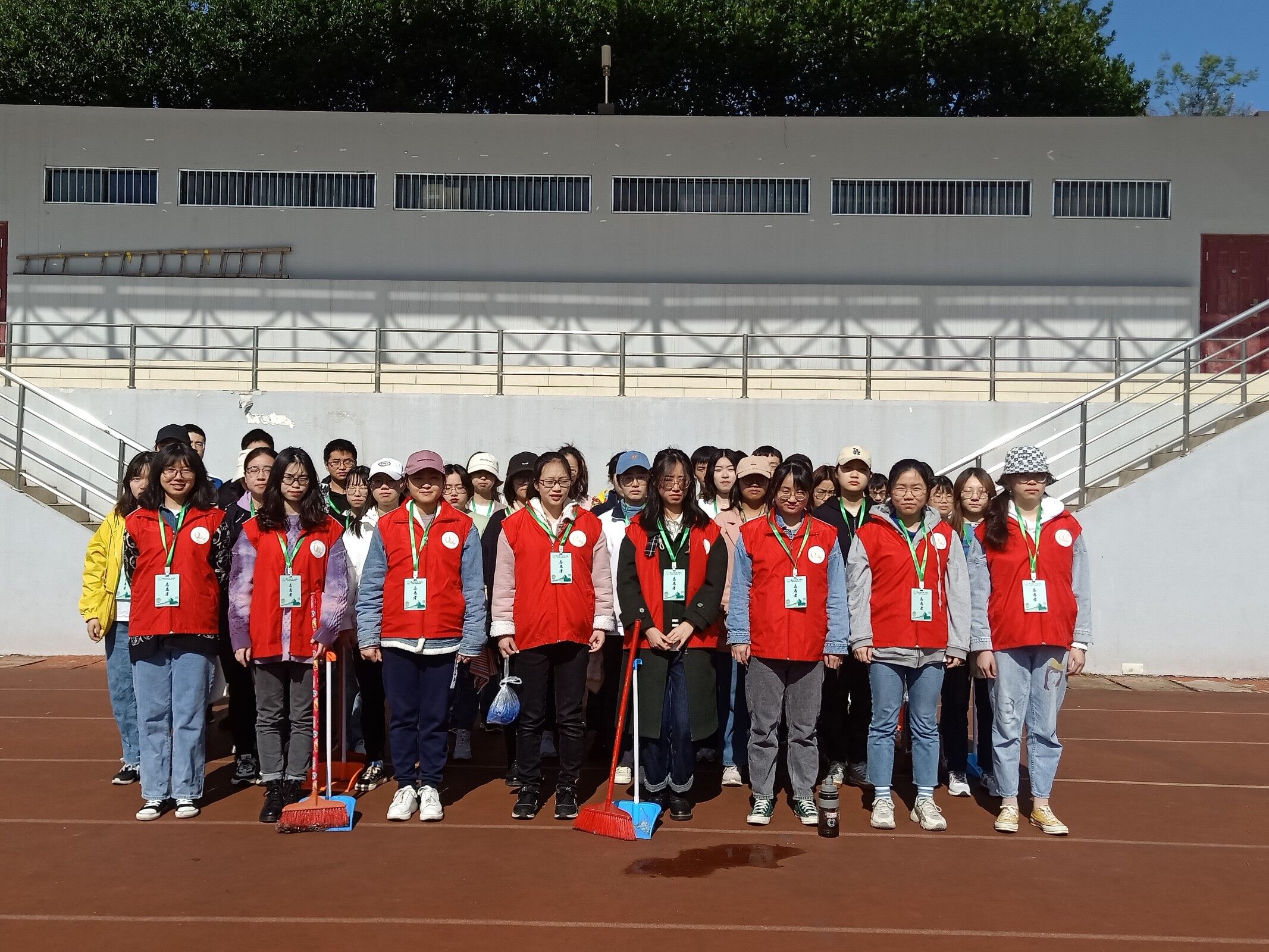 4月4日上午,黑料网 青年志愿者协会组织了40名志愿者,在黑料网 操场开展了阳光清“尘”志愿活动。阳光清“尘”志愿活动旨在对学校的操场主席台两边以及靠近玉兰路一侧的观众席进行清洁。