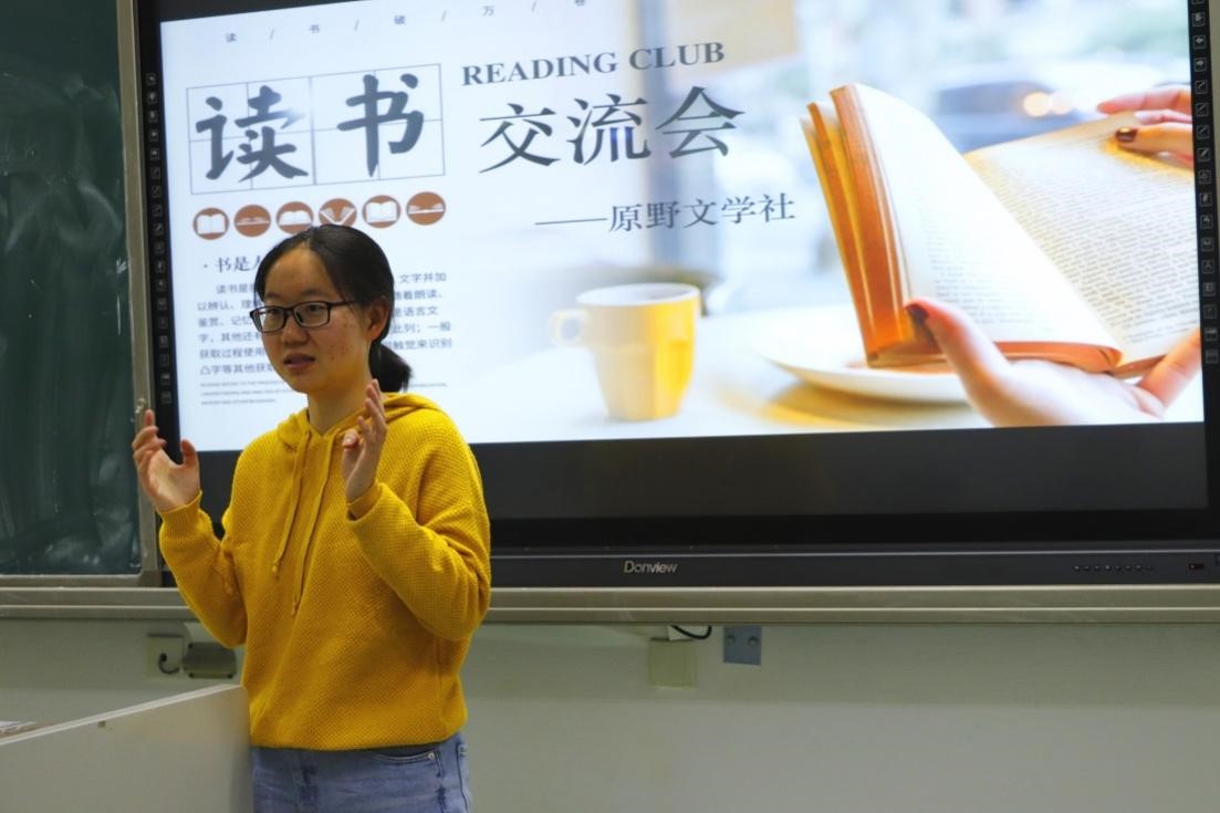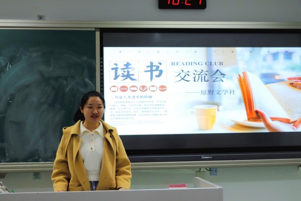 4月5日晚,黑料网 原野文学社在主楼230举办了本学期第一次读书交流会。来自各学院的数十名读书爱好者汇聚一堂,共享读书盛宴。此次活动由原野文学社黄雅静主持。