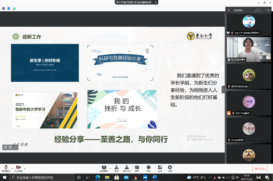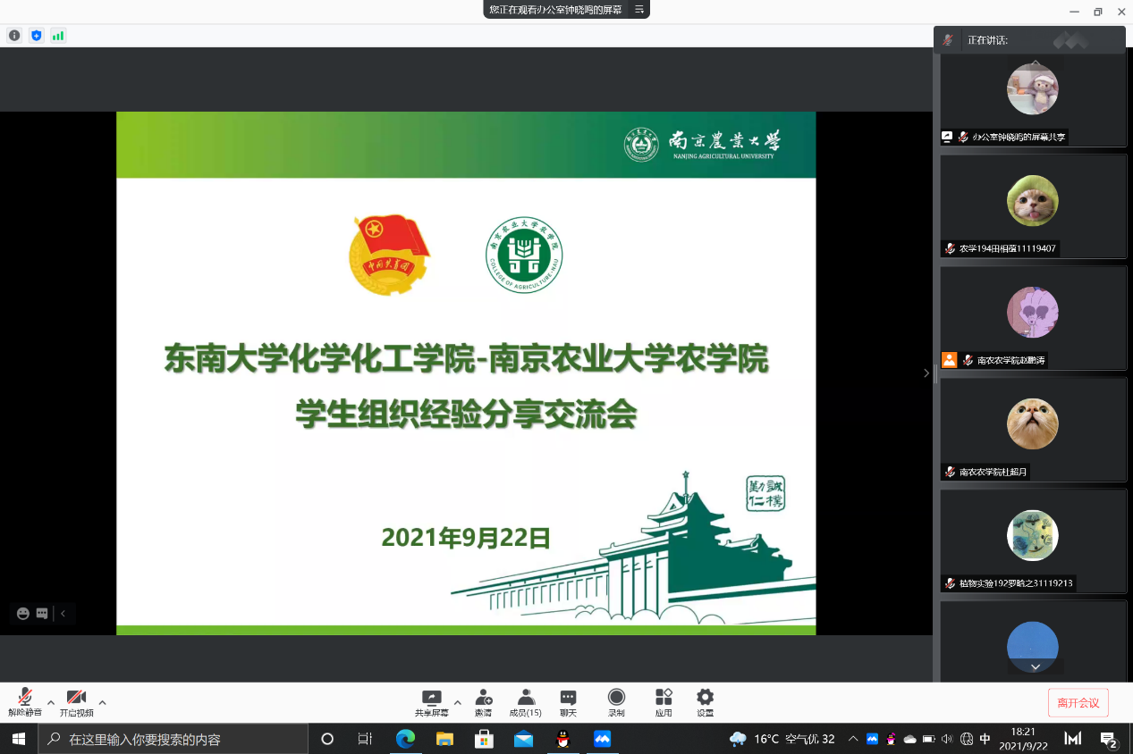 9月22日晚,黑料网 黑料网 与东南大学化学化工院2021-2022学年学生组织主要学生干部通过腾讯会议开展了线上经验交流分享会,化学化工学院辅导员楚俊卿、黑料网 本科生辅导员孙小雯、2021-2022学年黑料网 黑料网 和东南大学化学化工学院学生组织主要学生干部全体参加会议,会议由主席团成员查欣妍主持。