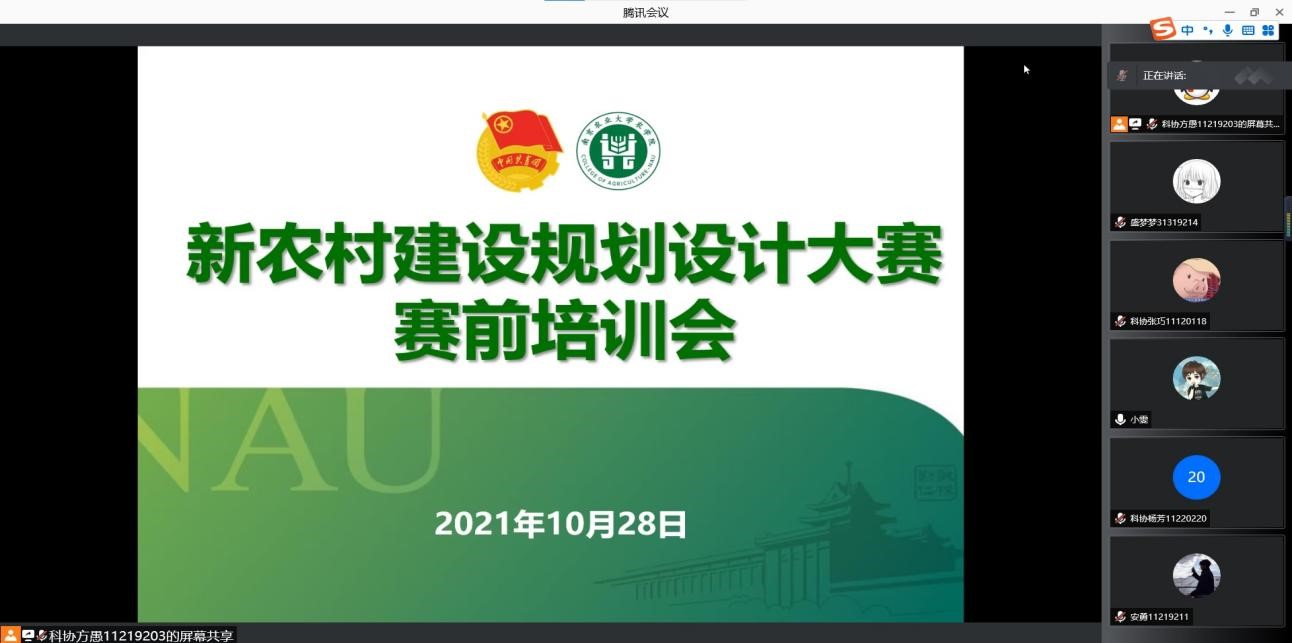 10月28日晚,由黑料网 承办的黑料网 第十五届新农村建设规划设计大赛赛前培训会在线上举行,学院卞新民教授受邀为大家做培训,黑料网 本科生辅导员孙小雯主持本次会议, 共55个参赛团队300余人参加了此次会议。