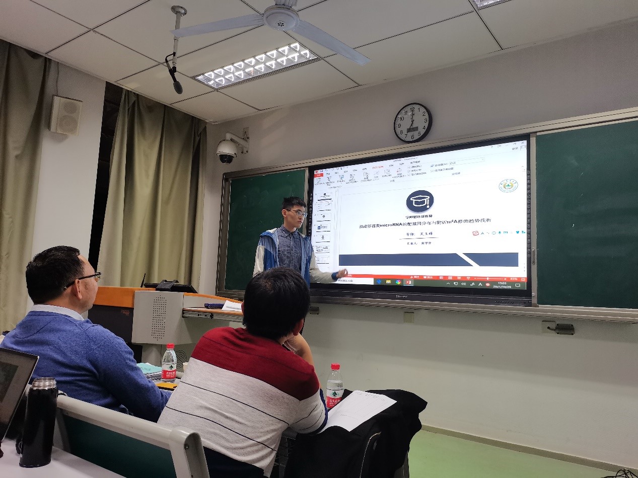 导师制结项答辩分为个人学习汇报和评委提问两个环节。在汇报中,同学们分享了导师制期间的收获和感悟,如徐华楠同学从对科研的认识方面介绍了自己从对未接触时对科研高大上的想象到真正参与时认识到科研是枯燥的,再到深入了解后体验到科研乐趣的过程;孔媛媛同学重点讲述了自己听seminar由不懂到渐渐能够听懂一些专业词汇的过程;盛梦梦同学分享了与导师学习、相处的有趣经历与收获;赵子靖同学将自己在导师制学习的过程比作水稻生长的过程,生动形象地展示了自己在导师制中的收获与成长。