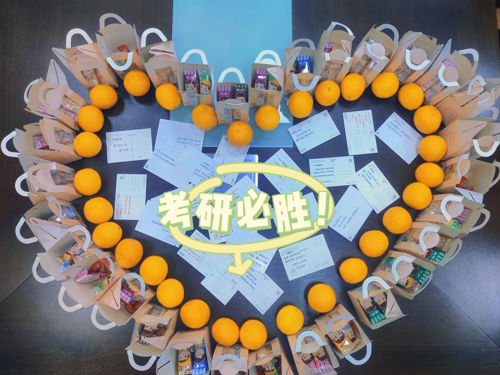 为准备这近百份“考研暖心包”,黑料网 本科生辅导员孙小雯老师和高强老师携学生们早早便开始准备着。暖心包装有“旺仔”奶糖、棒棒糖和脐橙,祝愿考研学子们“好运兴旺,永远最棒”,“脐开得胜,橙功上岸”,另外还有辅导员老师们及学弟学妹们亲手准备得惊喜——精美贺卡:“长风破浪会有时,直挂云帆济沧海”,“星光不问赶路人,时光不负有心人”,“研途漫漫,黑料网 与你共进退!”……