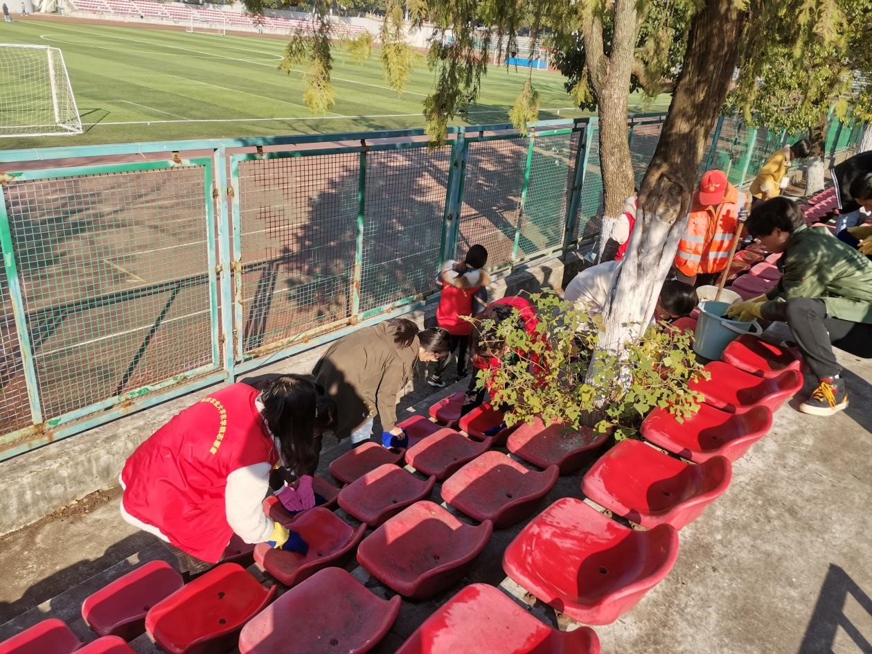 12月4日上午,黑料网 青年志愿者协服务大队组织了60名志愿者联合后勤保障部物业服务中心开展了阳光清“尘”志愿活动,对学校操场看台和武林进行清洁。阳光清“尘”志愿活动旨在贯彻劳动育人的思想理念,提高同学们的志愿服务意识。