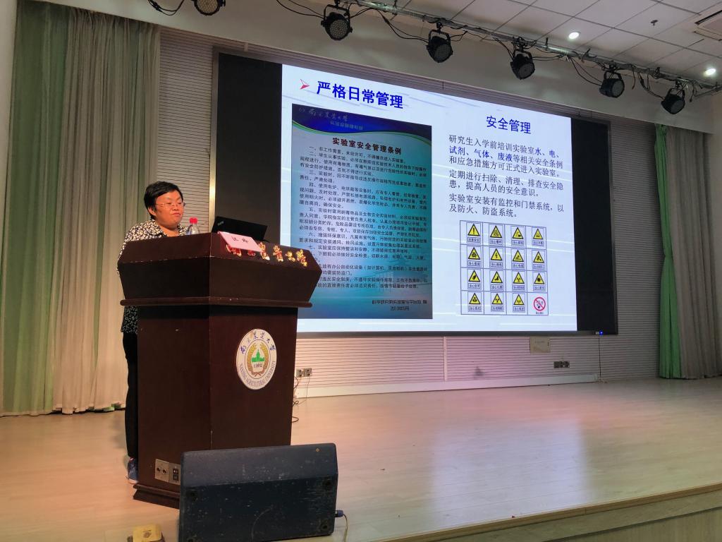 江玲老师从研究生“五个基本要素”谈起,她提醒广大研究生要积极的塑造科研思维、明确自己的研究方向,不断提高科研综合素质具备独立科研工作所的基本技能,提倡做实验要有动手能力,以定期汇报锻炼语言表达能力、提高效率及时纠偏,认真观察实验虚心请教,勇于坐的住冷板凳。同时要以科学的严谨性,来尊重科研学术诚信。在日常管理中要求研究生要注重研究生人身安全、实验室安全,定期排查安全隐患、提高全员安全意识。她还希望研究生有四种能力、处理好四个关系,来勉励广大研究生。