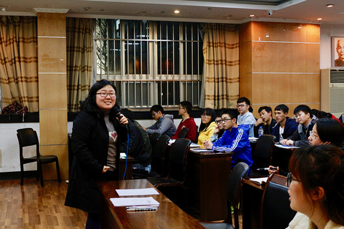第一环节,黄老师向参加讲座的同学说明四六级考试成绩的重要性,强调四六级成绩是看排名分的,一般用人单位都非常重视应聘者的六级成绩。第二环节,是简单的书面语水平测试,让大家大概的了解一下当前自己的英语水平,并说明了大学生的英语水平大多是随着年级的增长呈不同坡度的下降趋势,告诫大家过四六级要趁早。第三环节,黄老师用幽默的语调和丰富的肢体语言向大家分析讲解了四六级考试的题型和应对策略。关于写作要选段与段之间空行的方式,平时要选用合适的笔、答题卡和时间来练习写作,最好是养成下午两点钟写作的习惯,而且中间一段的连接词等关键词的首字母最好加粗等等;听力由于只听一遍,所以黄老师强调我们在听听力的时候要注意舍得,不要走神和有强迫症;对于阅读翻译题,要根据分值选择正确的答题顺序:先做“大头”传统的阅读理解,之后做匹配题,顺着阅读的语感再将翻译题写出来,最后再做十五选十,这种做题技巧是在有限的时间内拿高分的好方法。第四环节是抽奖发四六级资料。