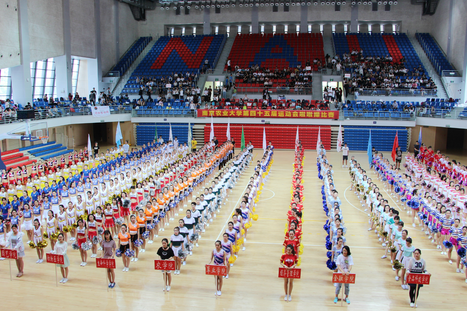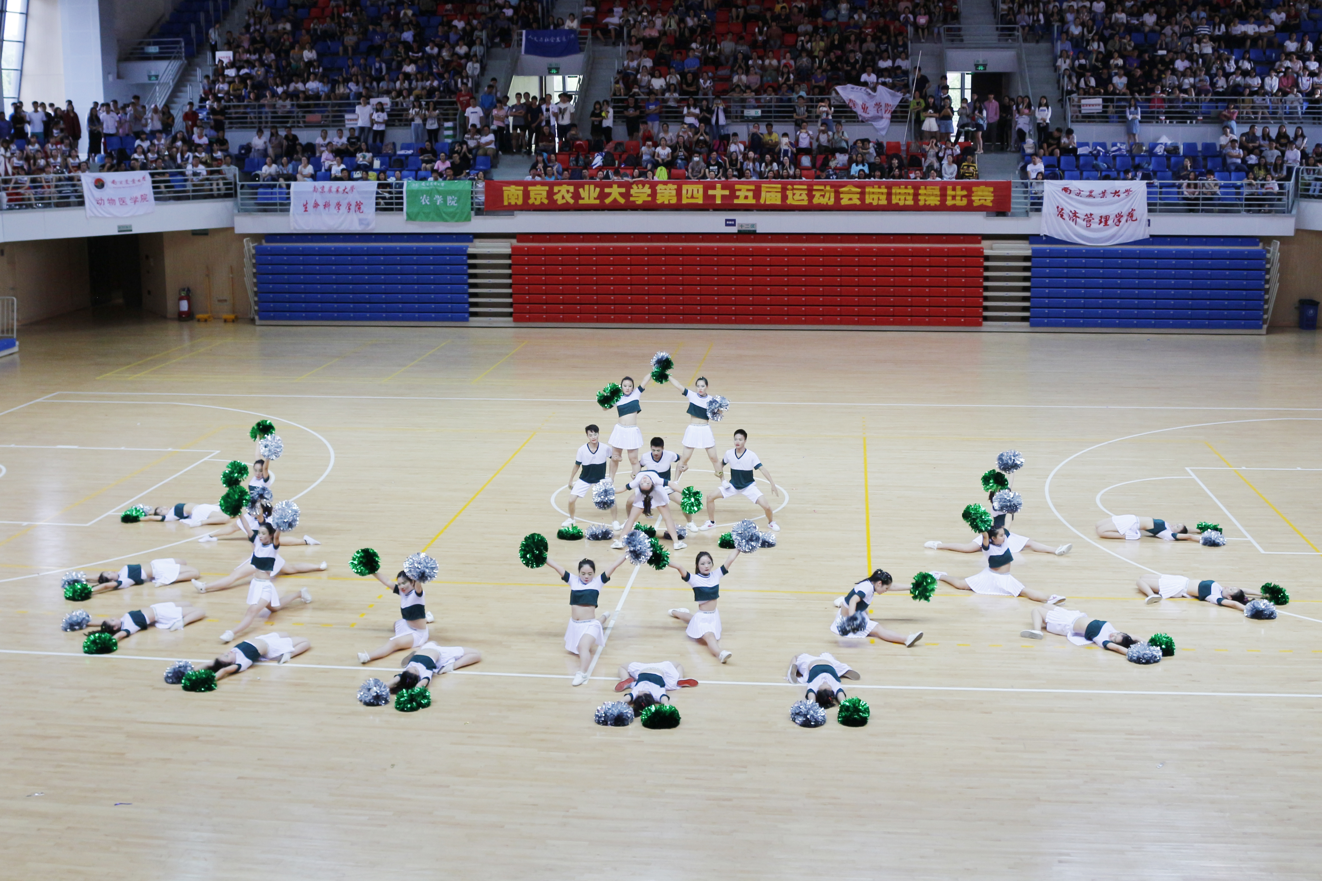 开幕式上16支啦啦队共同表演了精彩的开场舞,旋律激扬、舞动激越、热情澎湃的表演,把闪耀着青春光环与生命魅力的南农学子风采播撒在体育中心,其优异表现受到领导老师的高度评价与赞扬,受到在场观众的高度认可与关注。