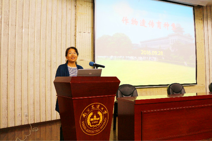 之后姚霞教授从农学系的师资概况、科研成绩以及各课题组等方面出发对农学系进行简单介绍,让同学们对农学专业有了一个大概的了解,同时她也对同学们关于专业学习要求以及毕业的去向等问题做出了解答。郭旺珍教授则从作物遗传育种的学科分类、研究方向、专业建设现状、研究团队以及科研平台等方面向同学详细地介绍了作物遗传育种专业。他鼓励同学们拥有自己的目标和梦想。刘康教授以种子作为切入,谈及种子的重要性、我国种业的发展状况、现代种业的发展及成果。