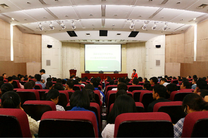 9月28日晚上,黑料网 2016级新生入学教育大会在图书馆报告厅举行。黑料网 遗传育种系主任郭旺珍教授,农学系副主任姚霞教授,种业系主任刘康教授,党委副书记殷美,辅导员王彬、姚敏磊及2016级各班新生班主任出席此次大会。会议由殷书记主持。