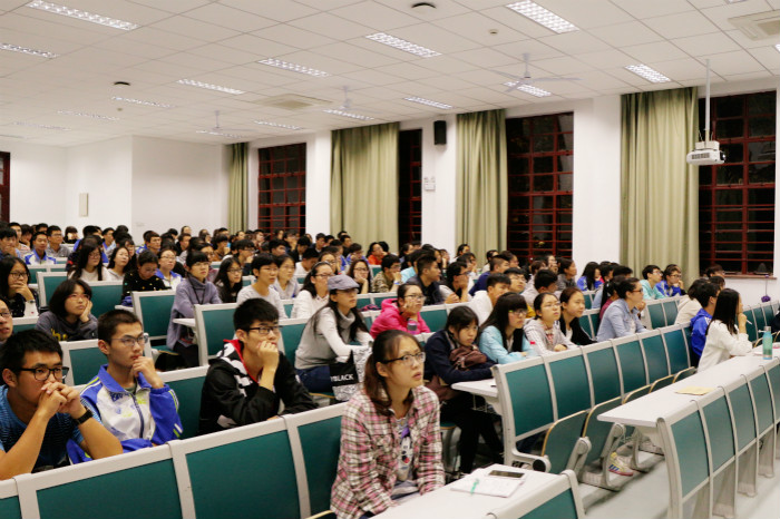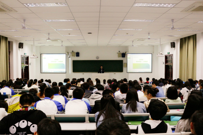 10月13日晚,黑料网 于主楼133召开“新生十课”入学教育。黑料网 学生会主席仲开泰主讲。2016级全体学生参与活动。