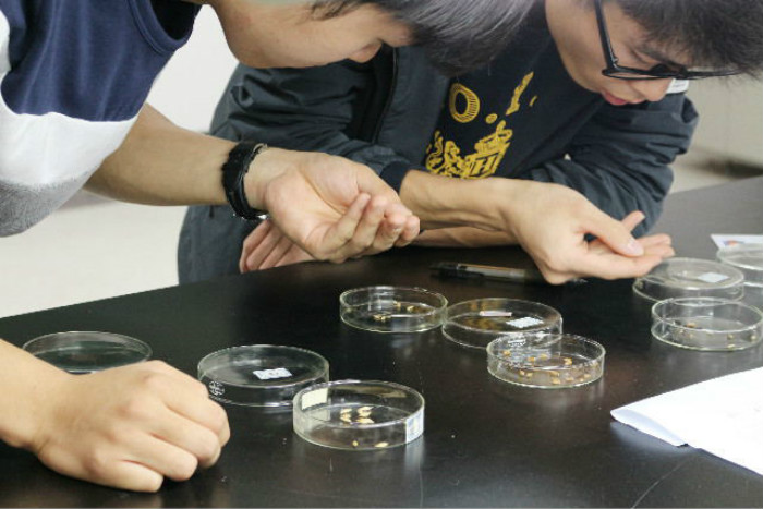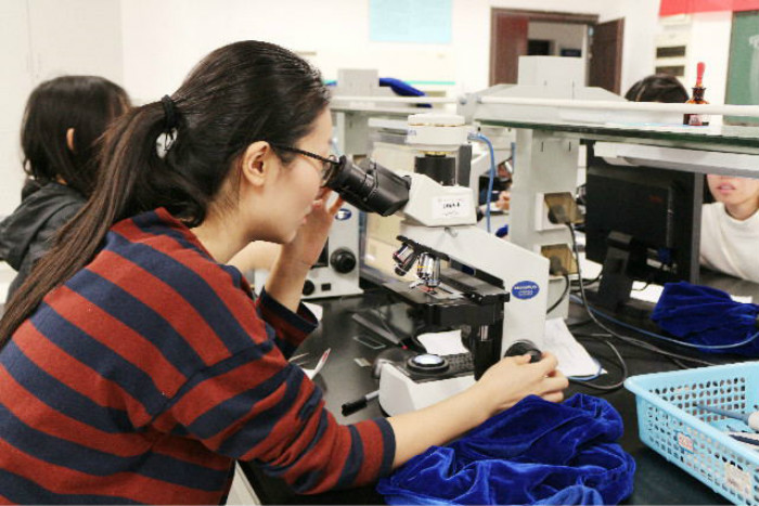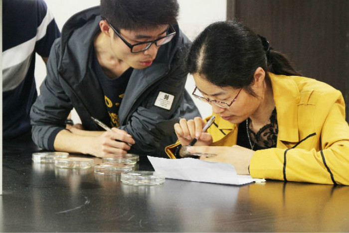 初赛共笔试和实验两部分。笔试于下午两点在教学楼c301举行,历时一个半小时。实验分为A实验四大麦类观察B实验有丝分裂观察。58支队伍已于赛前抽选确定实验内容。两项实验分别于A2004、A1004举行。实验现场30支队伍严肃紧张,组员们配合默契,分工合理,他们都有条不紊、争分夺秒,小声讨论着实验结果的准确性。