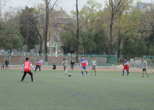 休整十分钟之后,双方互换场地,迎来下半场比赛。下半场由我院开球,开球后园艺学院的球员上抢也十分凶猛,想快攻以扩大优势,但是我院后防十分稳固,快攻被断,攻防互换。由于园艺学院具有比分优势,并且他们也十分放心后防线,所以大批兵力都在前场,但是这种阵型风险很大,一旦前场被断球,很容易被打快攻。我院的队员也看出对方阵型的软肋,屡屡试图断球快攻,我院前锋好几次给对方造成威胁,可惜没有收获进球。园艺学院在前场猛攻,但是也没有达到预期效果,便再次改变踢法,试图突破我院后防。