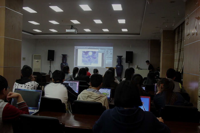会上培训人员简要地介绍了此次培训会的主要内容,即Photoshop简单工具的使用和微信推送的排版。他首先就Photoshop基础工具进行了简单介绍,让大家对Photoshop的界面有所了解。随后采用演示与讲解结合的方式详细介绍了Photoshop里常用工具的作用以及使用方法,并现场利用图片进行相关的演示操作。他强调了Photoshop基础工具的使用对于今后制作海报等复杂工作的重要性,并表示Photoshop必须要自己亲手使用才能逐步掌握技巧直至熟练。在讲解之后是各部门成员的自由提问时间,培训人员也对各位干事的提问进行了相关解答。之后培训人员也针对微信推送的内容及排版等技术问题进行了讲解,微信平台作为我院重要的信息发布平台之一,学习如何操作如何运营具有重要的意义。