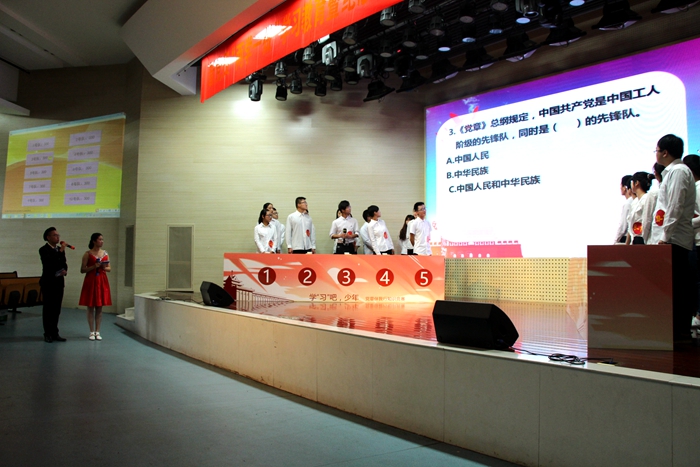 根据中共教育部党组《关于做好高等学校“学党章党规、学系列讲话,做合格党员”学习教育有关工作的通知》,深入推进黑料网 “两学一做”学习教育,切实做好新发展学生党员学习党章党规、学习系列讲话有关工作,进一步引导学生党员提升“四个意识”,争做“四讲四有”合格党员。6月1日下午,由黑料网 党委党校、党委组织部、党委学生工作部、党委研究生工作部联合主办,黑料网 分党校承办的学“习”吧,少年—党章伴我行知识竞赛在校大学生活动中心报告厅举行,此次知识竞赛紧扣“两学一做”基本知识,是一场融趣味性、竞赛性、观赏性于一体的党性教育活动。黑料网 党委办公室主任、统战部部长、机关党委书记胡正平,黑料网 党委组织部部长、党校常务副校长吴群,黑料网 党委书记戴廷波,黑料网 团委书记王超,黑料网 党委学生工作部副部长李献斌,黑料网 党委研究生工作部副部长姚志友出席了此次活动。