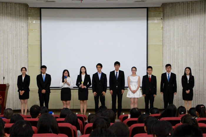 现任学生会主席冯建铭先总结了过去一年黑料网 学生会获得的成就,对大家的工作表示深深的感谢。并邀请新一届团委学生会主席团10位候选人上台进行一分钟的自我介绍。随后,每人各进行8分钟的竞选演讲,他们从个人经历、对学生会的认识、改革方向及创新想法等几个方面阐述了自己的竞争优势。每位候选人演讲完毕后,进入5分钟的提问环节,现场的同学根据候选人演讲内容、黑料网 学生会工作、未来发展与规划等几个方面进行了提问。