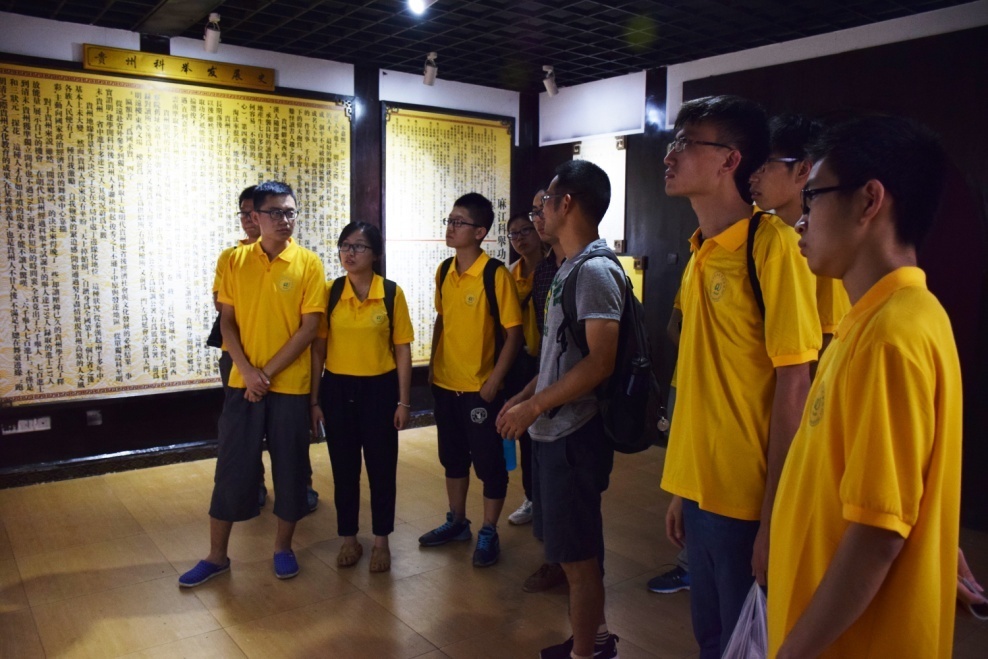 7月16日,黑料网 碧海青峰赤子行麻江小分队在麻江县贤昌镇副镇长施雪钢老师的带领下,参观了麻江县贤昌镇的扶贫建设重点项目——夏同龢状元文化产业园区和斗牛场。