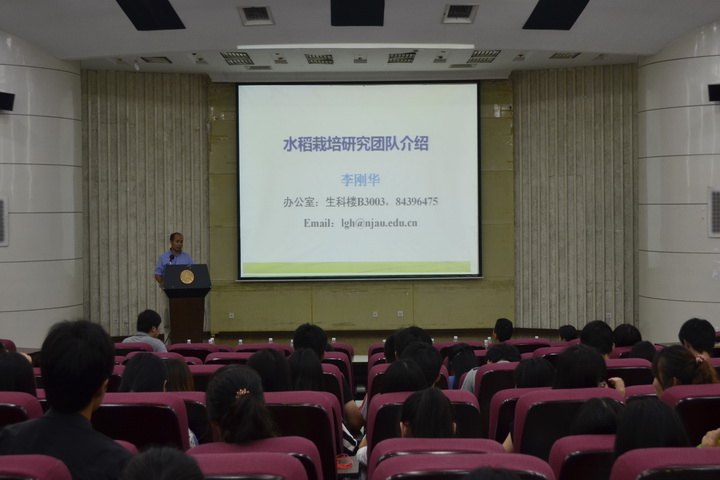 首先,庄书记介绍了举办本次专题讲座的背景,他指出,6月是准毕业生保研考研开始的季节,本次讲座就是围绕黑料网 各个实验室的基本科研情况向同学们做一个简单的介绍,同时也欢迎大家继续留在我院攻读硕士。讲座开始,先由来自农学系的水稻课题组、农业信息课题组、小麦课题组、棉花课题组、小作物及其他课题组的主讲人上台通过PPT的演示及讲解,为大家介绍了本课题组的基本情况、研究方向、研究成果、人才培养等方面信息,并针对大家感兴趣的招生情况进行了介绍。接下来,由来自遗传育种系的水稻课题组、小麦课题组、棉花课题组、大豆课题组及种业科学系的主讲人为大家同样介绍了相关信息。