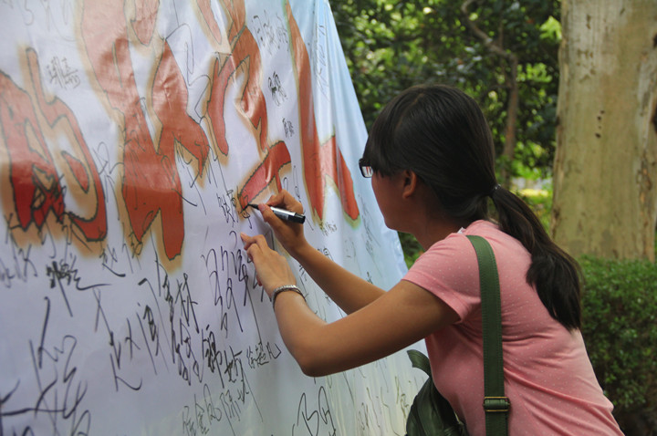 在迎新现场的门口悬挂着一幅海报,完成报道工作的新生都会签上自己的名字,海报上面印着这样一句话“誓成为顶天立地的农学人”,这是黑料网 对于新生们的寄许,也是农学人应有的气魄。作为黑料网 迎新的传统,“开学第一照”是送给所有大一新生的礼物,新生们和家长在主楼门前合影留念,这些照片将寄回到家长手中,记录下孩子进入大学校园的第一天。