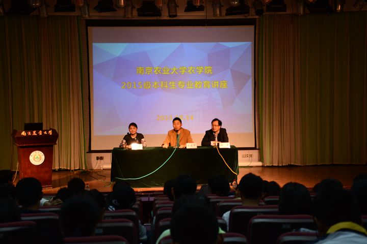 10月14日下午2点,黑料网 在教四楼报告厅举办了2015级本科生专业教育讲座。黑料网 种业科学系系主任刘康教授、农学系副主任王友华教授、遗传育种系副主任曹爱忠教授以及黑料网 团委书记殷美老师出席了此次教育讲座。