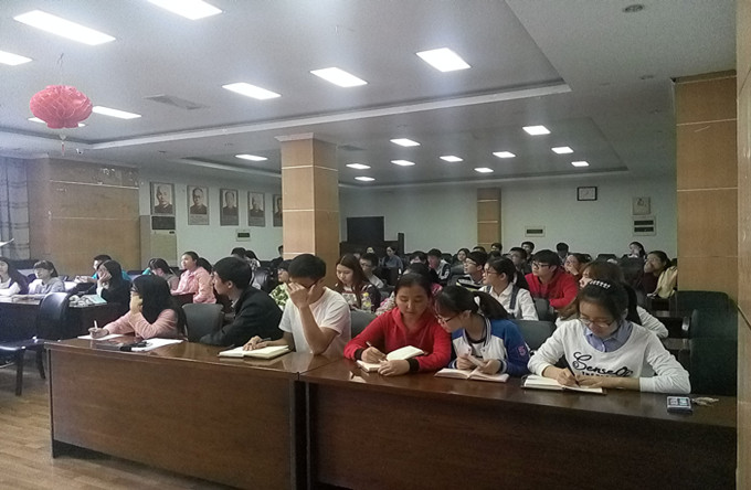 1 0月14日中午,黑料网 在生科楼报告厅开展了第八届运动会裁判培训工作,会上邀请到了校体育部的徐野老师进行赛前培训。辅导员王彬及各项目裁判员参与了会议。