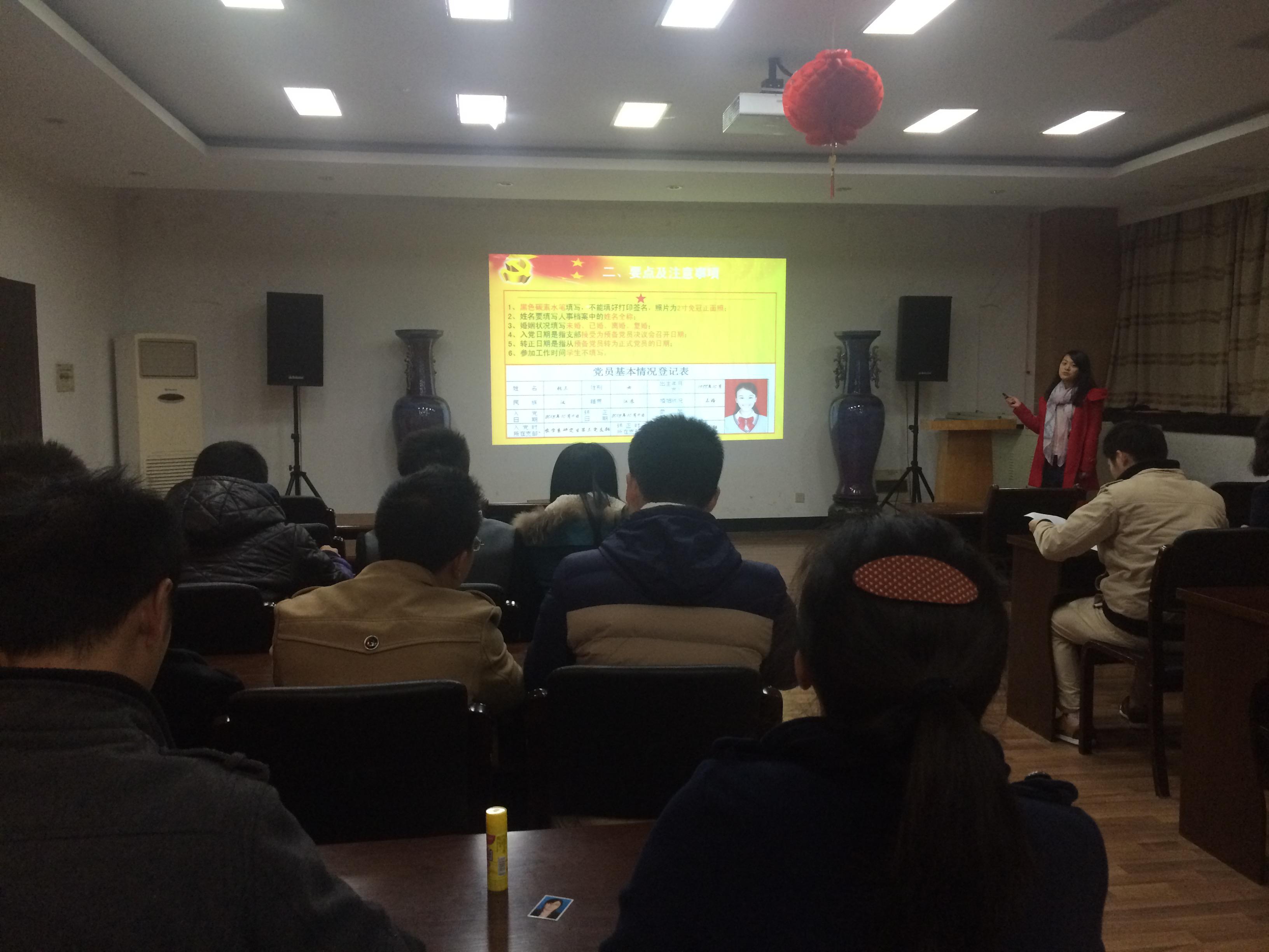 邵丽萍介绍了当前党支部的名称、党员发展现状及支部委员会情况,针对近期开展的党员组织关系排查工作进行了详细的解读,并以实例的形式对排查工作中《党员基本情况登记表》填表要点及注意事项做了详细说明。